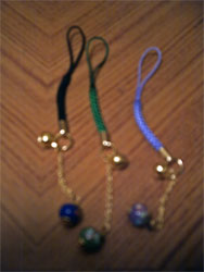 一応うちのメインキャラでもある、元親、元就、政宗のキャラカラーの小さな根付けを。