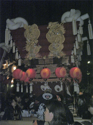 普通の御輿って奴ではなく、中に太鼓が組み込まれてて乗り込んだ人が叩く太鼓台って奴で、さらに幾重にも飾りのふとんが乗ってるという。上に人が立ったりもしますよ?